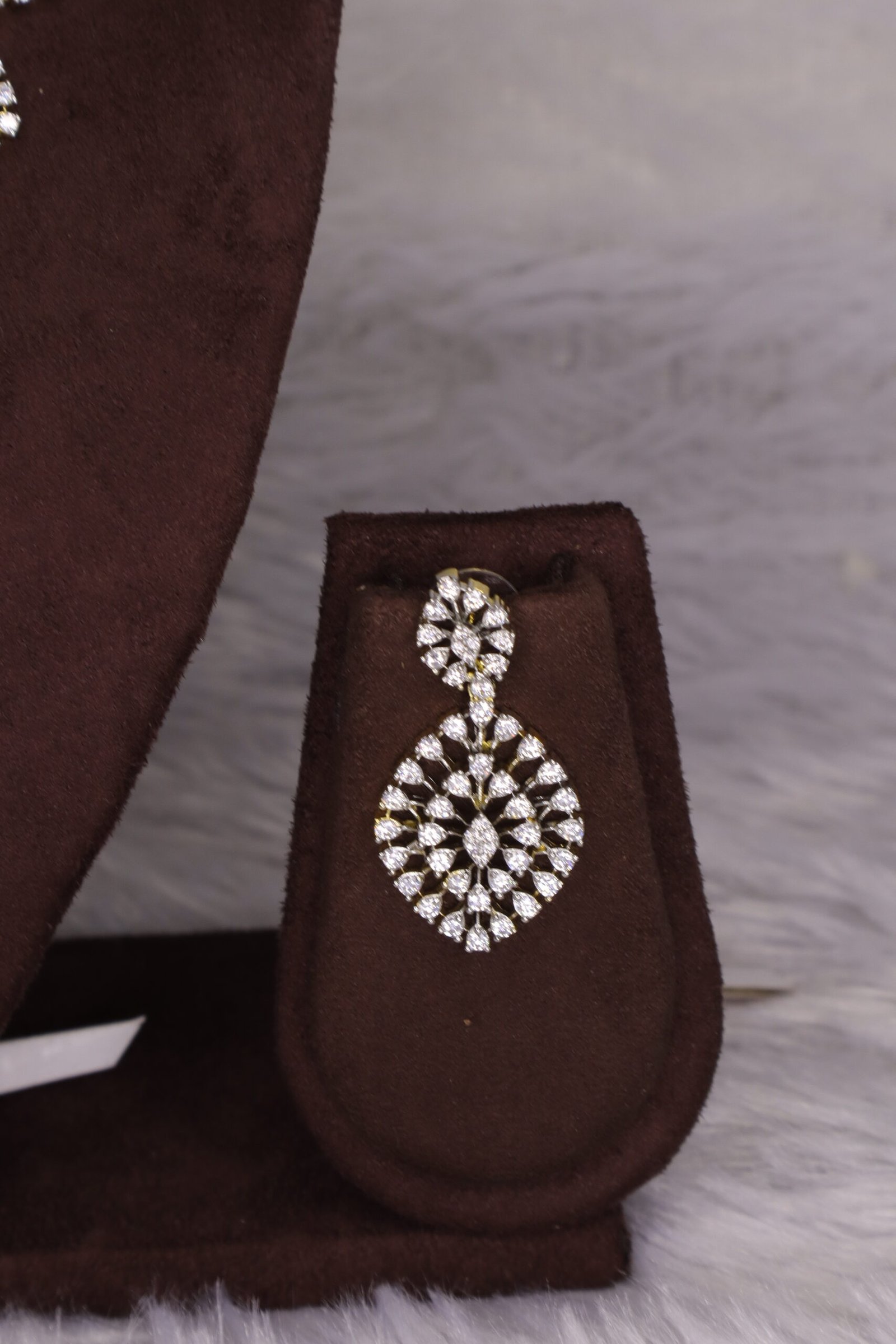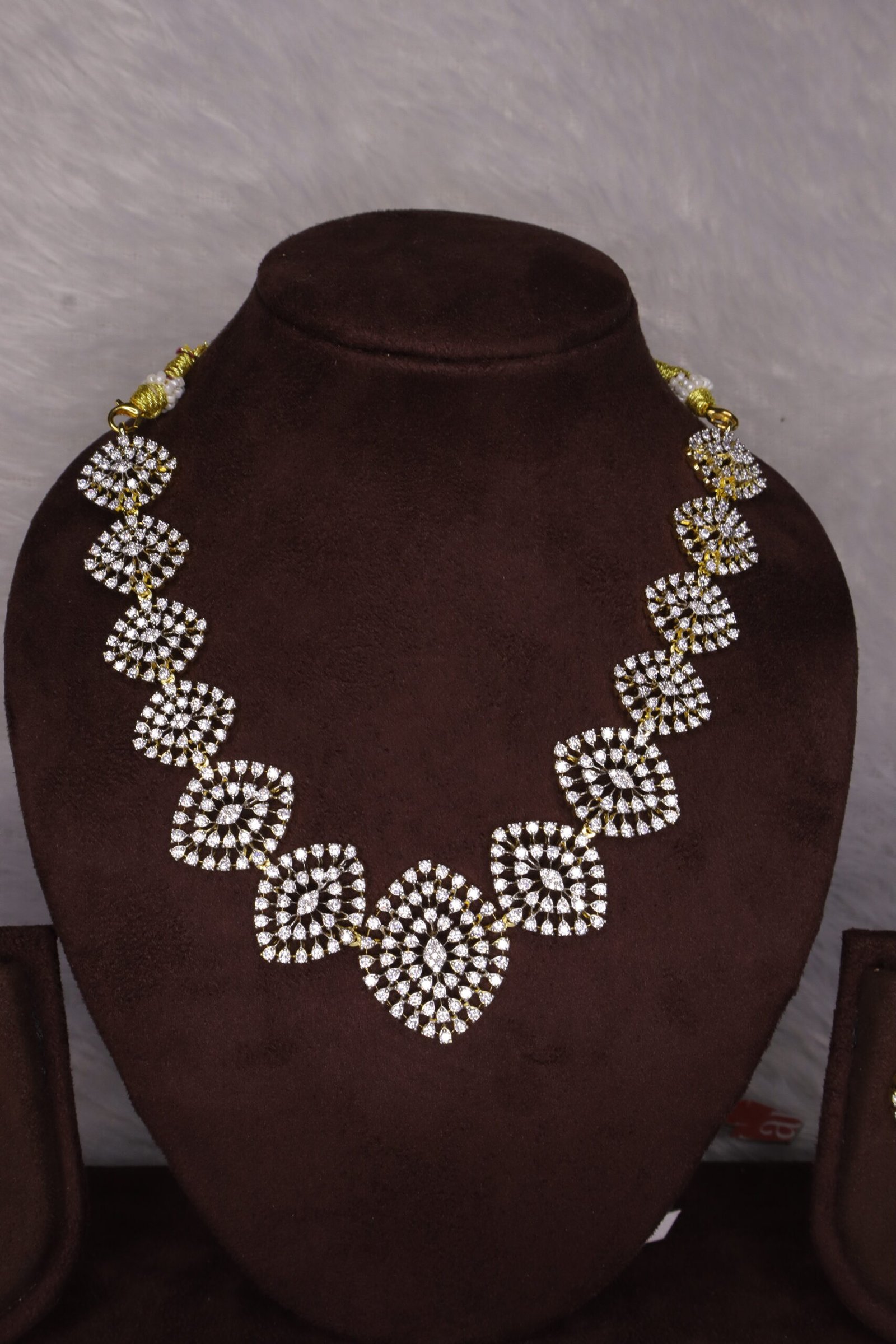 This Gold finished AD micro stone necklace set with a pair of earrings is perfect for wedding and various other occasions.