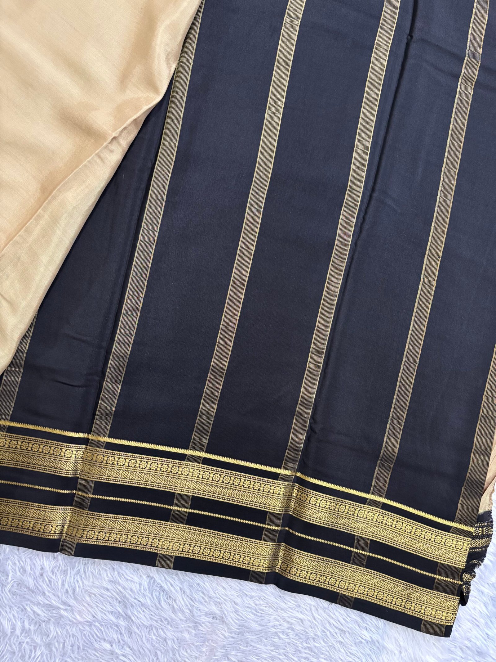 This beautiful Pure Mysore crepe silk saree having contrast double border with contrast pallu and blouse can elevate your wardrobe.