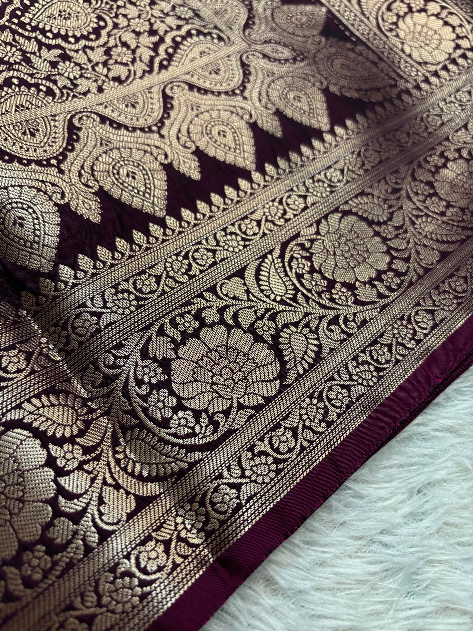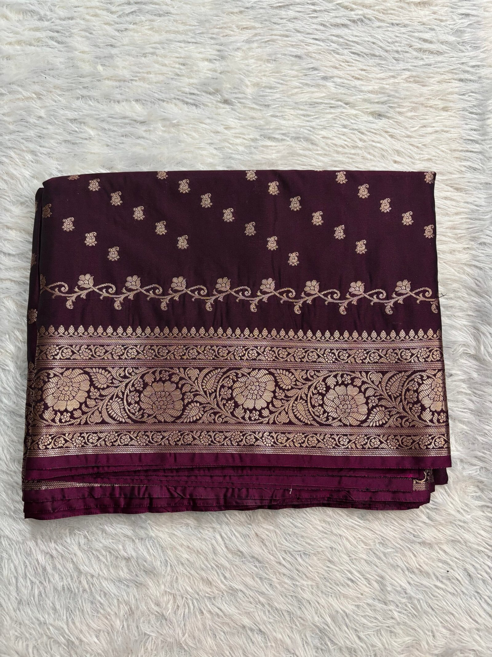 This premium katan silk saree having floral weavings in the body with beautiful rich pallu and brocade blouse.