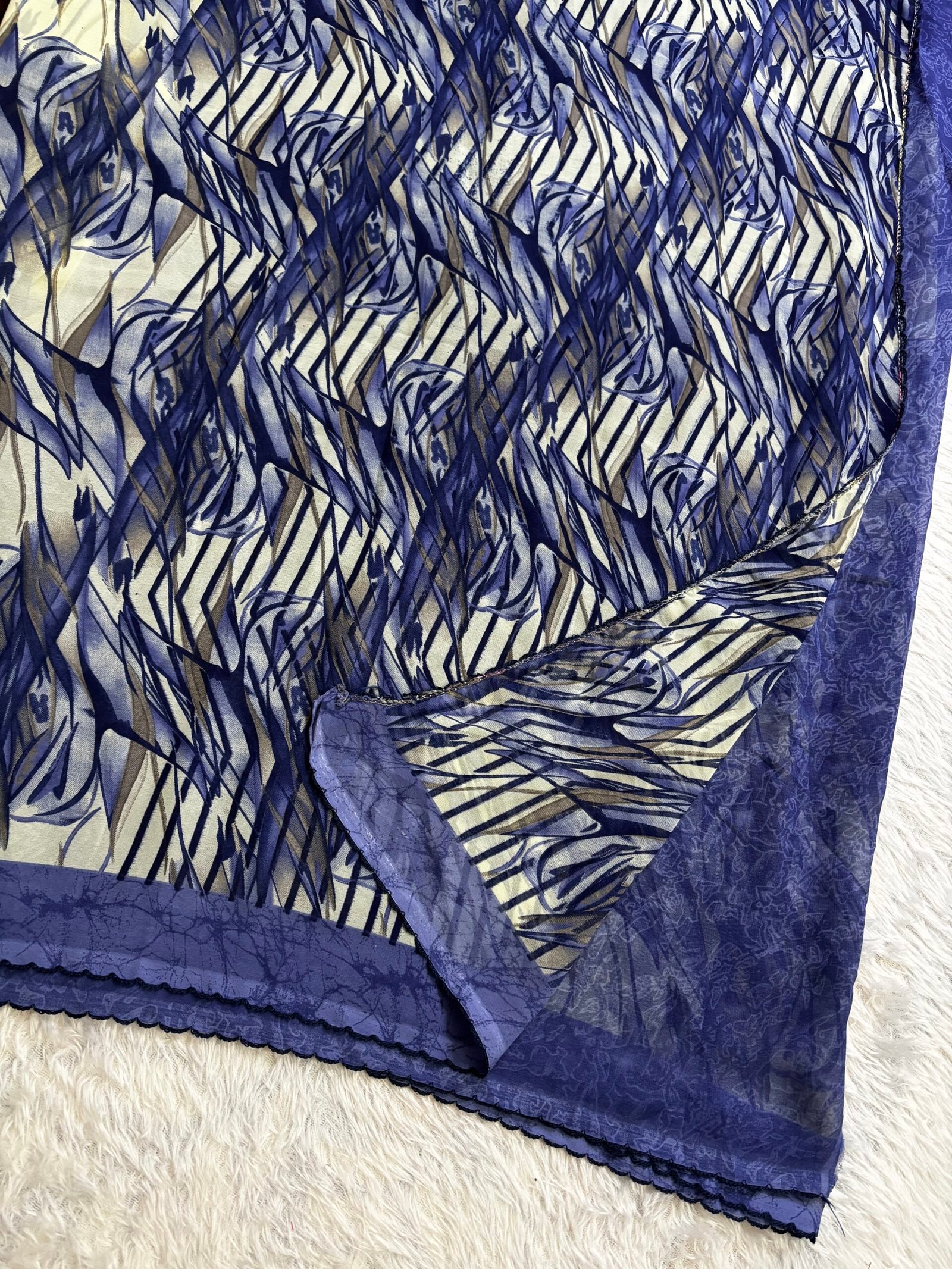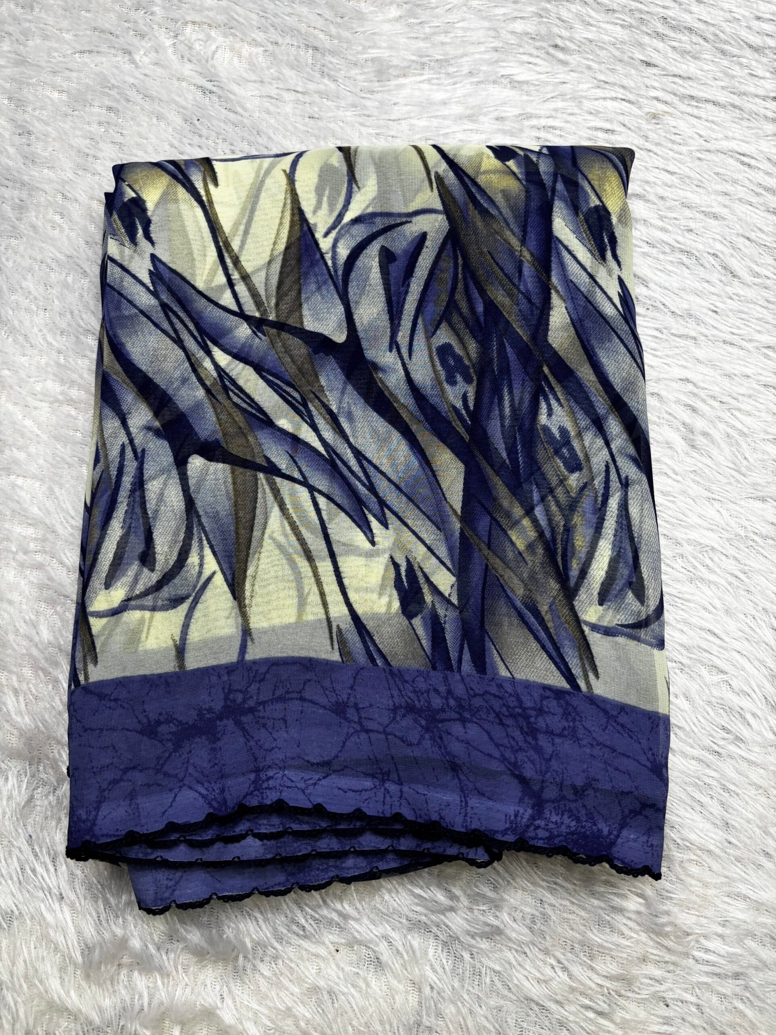This printed Georgette saree is a lightweight, perfect for daily wear which comes with abstract pattern pallu and contrast blouse.